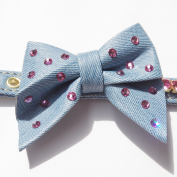 170の超大粒スワロフスキーを贅沢に使用したゴージャスなカラーリーシュ。おリボンとバックルにもたっぷりのスワロフスキーが。大きなおリボンで存在感たっぷり。