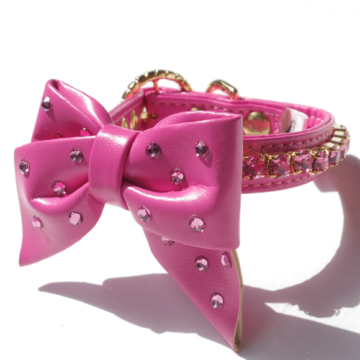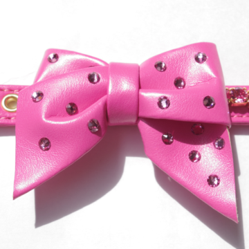 170の超大粒スワロフスキーを贅沢に使用したゴージャスなカラーリーシュ。おリボンとバックルにもたっぷりのスワロフスキーが。大きなおリボンで存在感たっぷり。