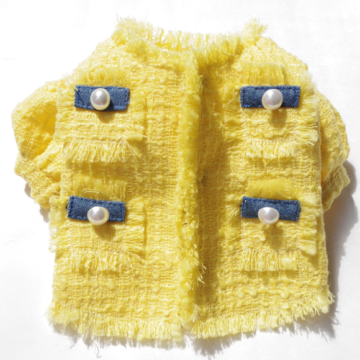 CHANEL使用の鮮やかなイタリア製最高級ツイード。人間と同じ仕様のLuxuryなジャケットに仕立てました。ツイードならではのフリンジにデニムがとってもお洒落。パフスリーブでガーリーに。お揃いワンピとアンサンブルで。