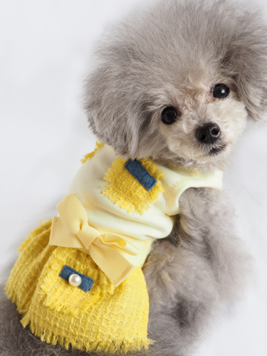 CHANEL使用の最高級イタリア製ツイードを上品なワンピに仕立てました。ツイードならではのフリンジがポイント。お揃いのジャケットとアンサンブルで。
