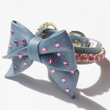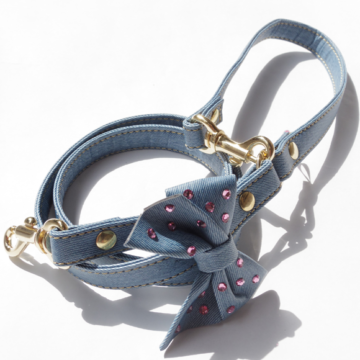 170の超大粒スワロフスキーを贅沢に使用したゴージャスなカラーリーシュ。おリボンとバックルにもたっぷりのスワロフスキーが。大きなおリボンで存在感たっぷり。