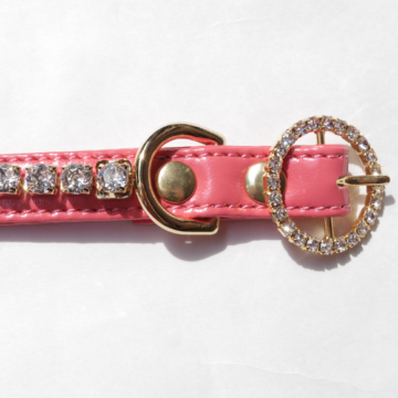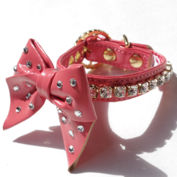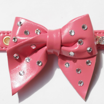 170の超大粒スワロフスキーを贅沢に使用したゴージャスなカラーリーシュ。おリボンとバックルにもたっぷりのスワロフスキーが。大きなおリボンで存在感たっぷり。