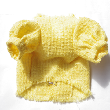 CHANEL使用の鮮やかなイタリア製最高級ツイード。人間と同じ仕様のLuxuryなジャケットに仕立てました。ツイードならではのフリンジにデニムがとってもお洒落。パフスリーブでガーリーに。お揃いワンピとアンサンブルで。